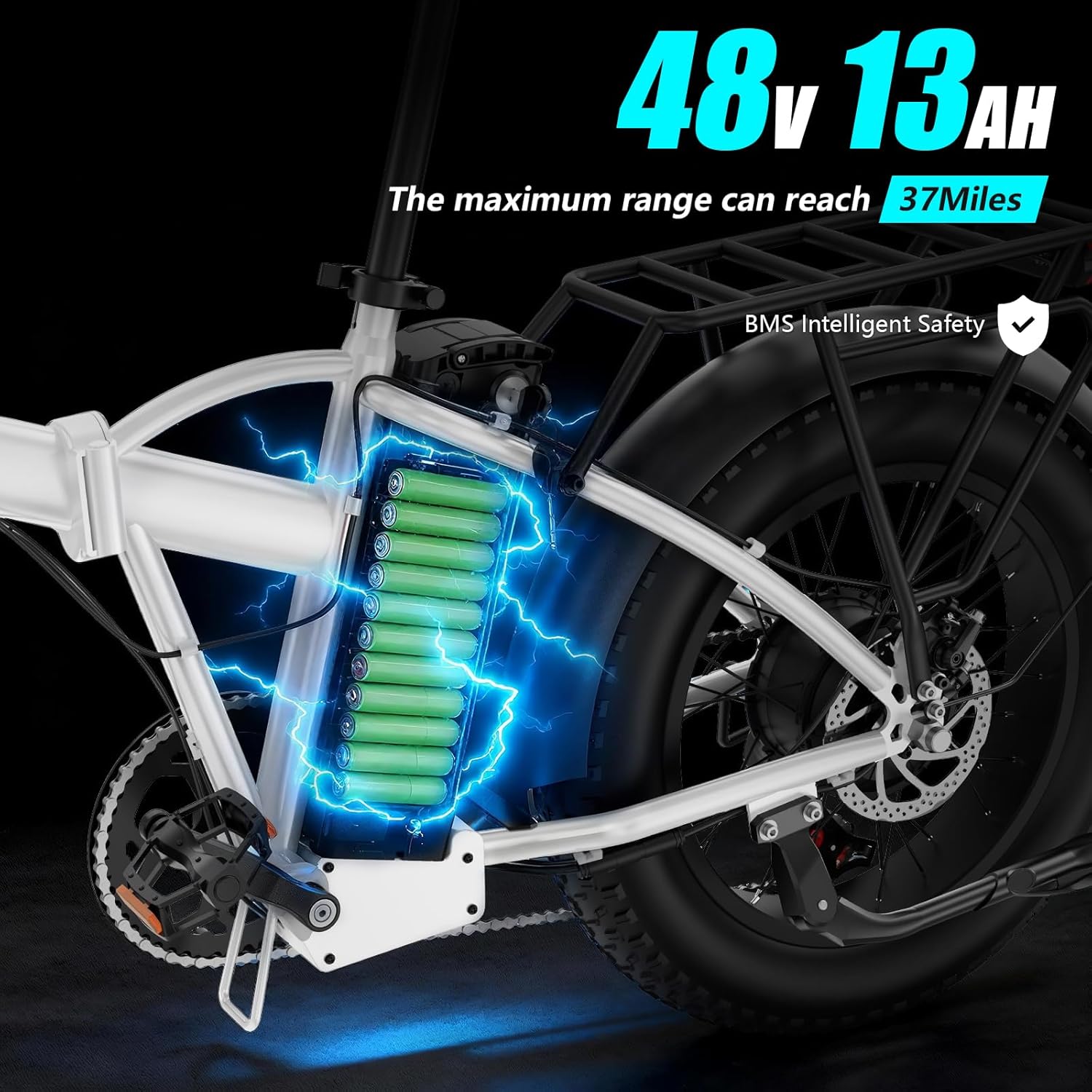 - LONG-LASTING 48V BATTERY & EXTENDED 37-MILE RANGE The removable 48V 13AH lithium-ion battery offers the freedom to travel up to 37 miles on a single charge. The integrated Intelligent BMS provides safety protections against over-charging and short-circuits.