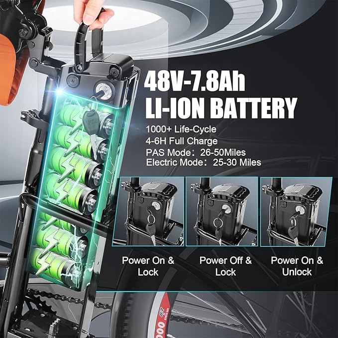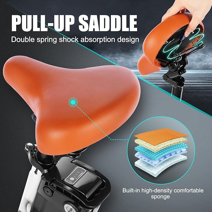 - ✅【PORTABLE BATTERY & EXCELLENT PERFORMANCE】The 13Ah battery is cleverly placed under the saddle, and the battery can be easily removed by pulling up the saddle. With the powerful 350W motor, it will bring you more power to meet the needs of daily commuting. The mileage range that can be achieved is 25-55miles.