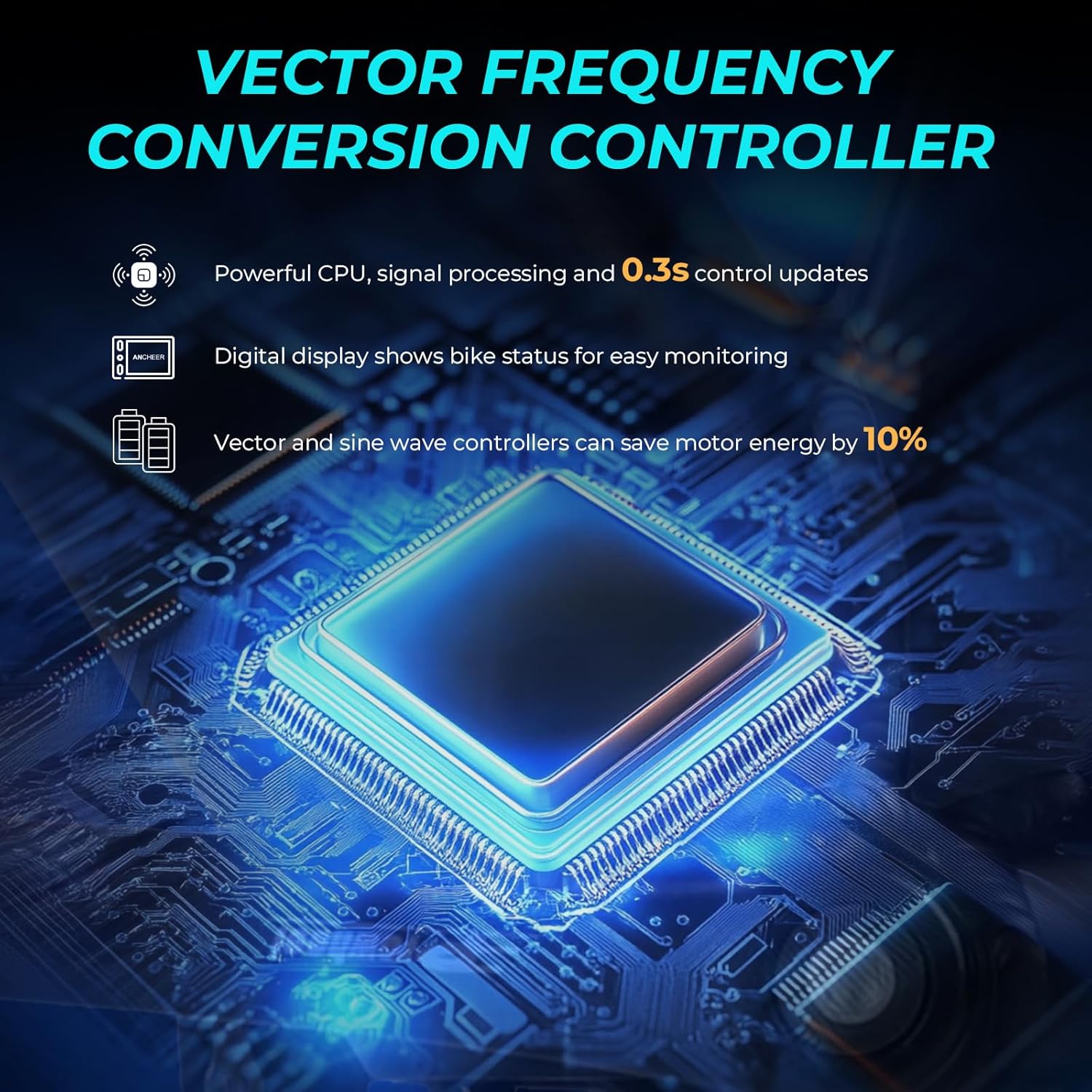 - 【ANCHEER Latest Fat Tire Electric Bike】 Equipped with ISO 13849 certified controller and meter. The vector frequency conversion controller updates per 0.3 seconds, providing efficient performance and 10% energy savings. The large digital display shows bike status for easy monitoring.