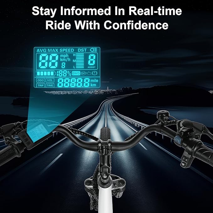 - ćLCD Digital Display & Night RidingćStay well-informed with the user-friendly LCD display, providing essential information such as battery level, current speed, and mileage, atc. Additionally, we have equipped this ebike with a rear light, prioritizing your safety and peace of mind during nighttime rides.