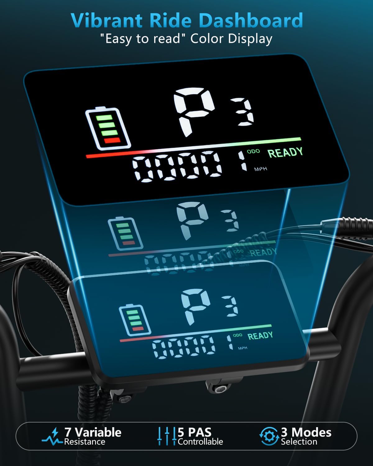 - 📊【Upgraded 5.2” LCD Display – Smarter, Clearer, Easier】The new 5.2-inch HD color display is brighter and wider for better visibility day or night. It shows real-time speed, mileage, pedal assist level, and battery power at a glance. This smart electric bike display keeps you fully informed and in control, helping you monitor performance, manage riding efficiency, and enjoy a safer, more connected riding experience anywhere you go.