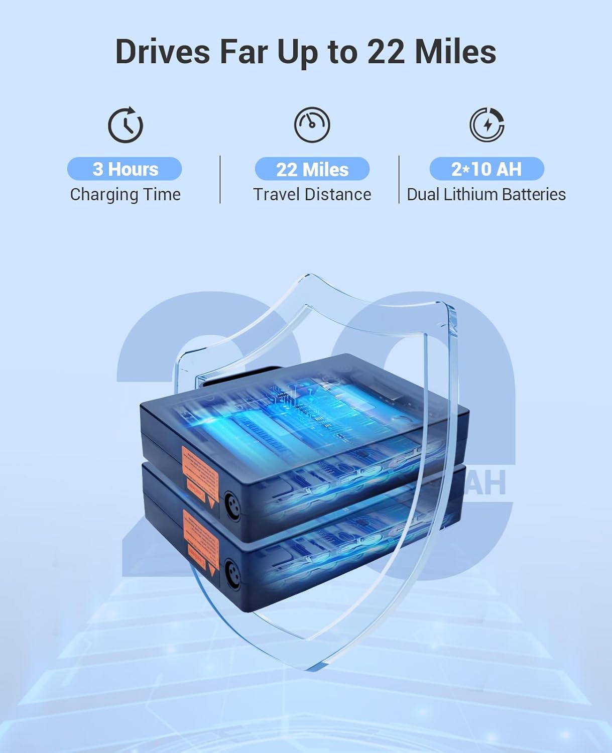 - Long Travel Range:Two high-capacity 10AH lithium batteries provide extended range up to 22 mi on a single charge,eliminating the need for frequent recharging.Perfect for those seeking a lightweight foldable electric wheelchair with long-lasting performance,this model ensures you can travel farther and maintain independence effortlessly