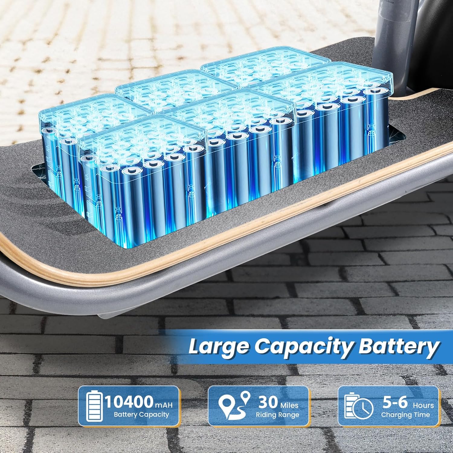 - 🛴【Large-Capacity Battery】: The adults electric scooter is equipped with high-capacity 48V lithium battery, enhanced by regenerative braking, provides a remarkable range of up to 30 miles. Its 12" pneumatic tires provide excellent grip, high elasticity, and wear resistance. The extra-wide deck makes long rides enjoyable and effortless.