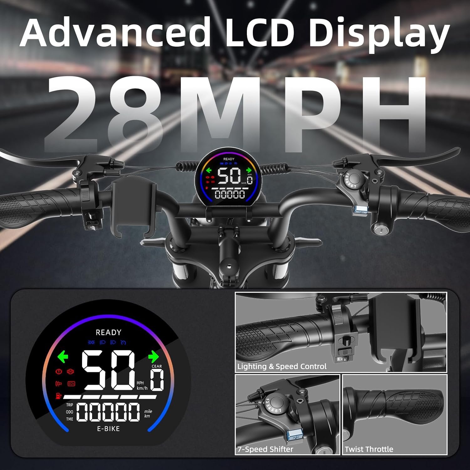 - 【Master Every Ride】The S20 electric bike for adults features a professional 7-speed gear system and three versatile riding modes—pedal, pedal assist, and full electric—allowing you to adapt effortlessly to city streets, rugged trails, or sandy beaches. The easy-to-read LCD display keeps you informed of speed, distance, and battery level, so you can personalize every ride for maximum comfort and performance.