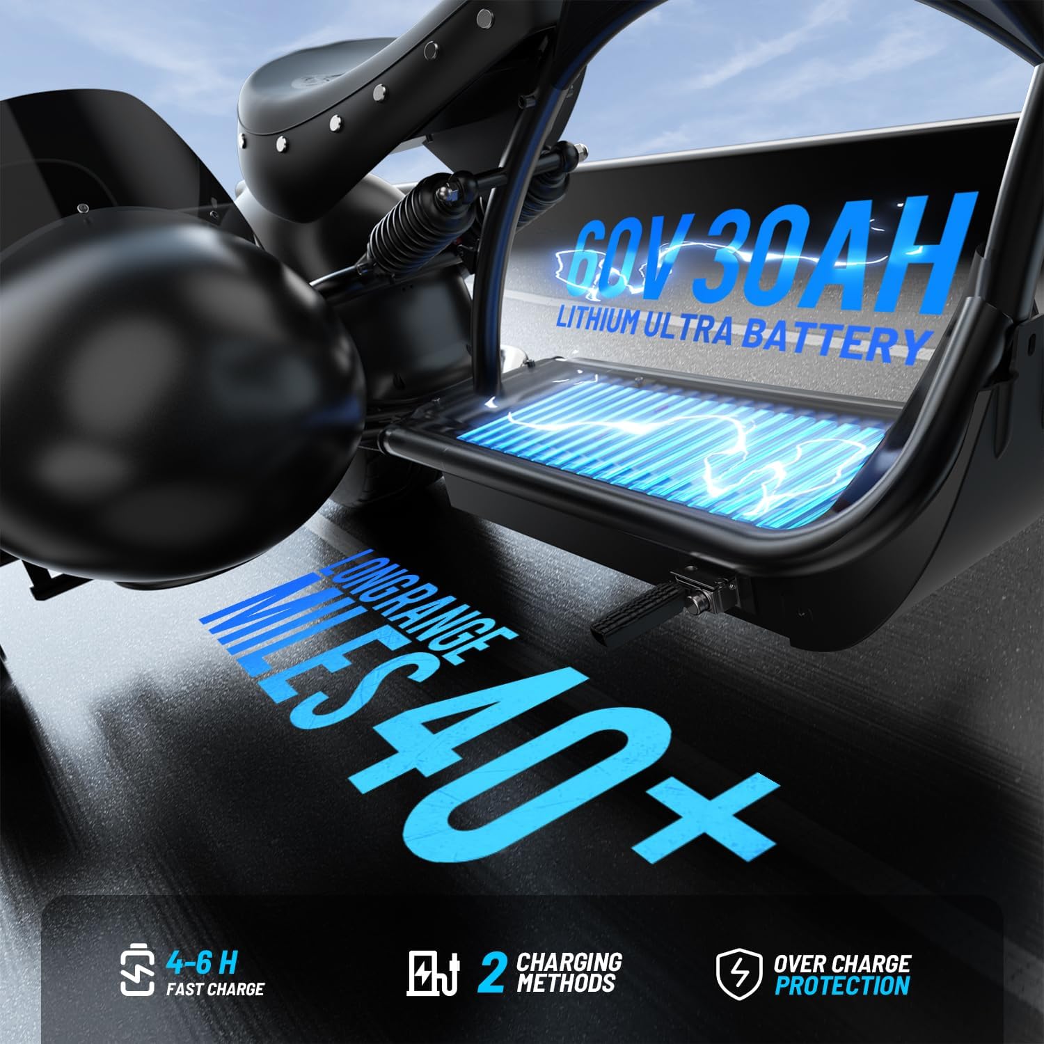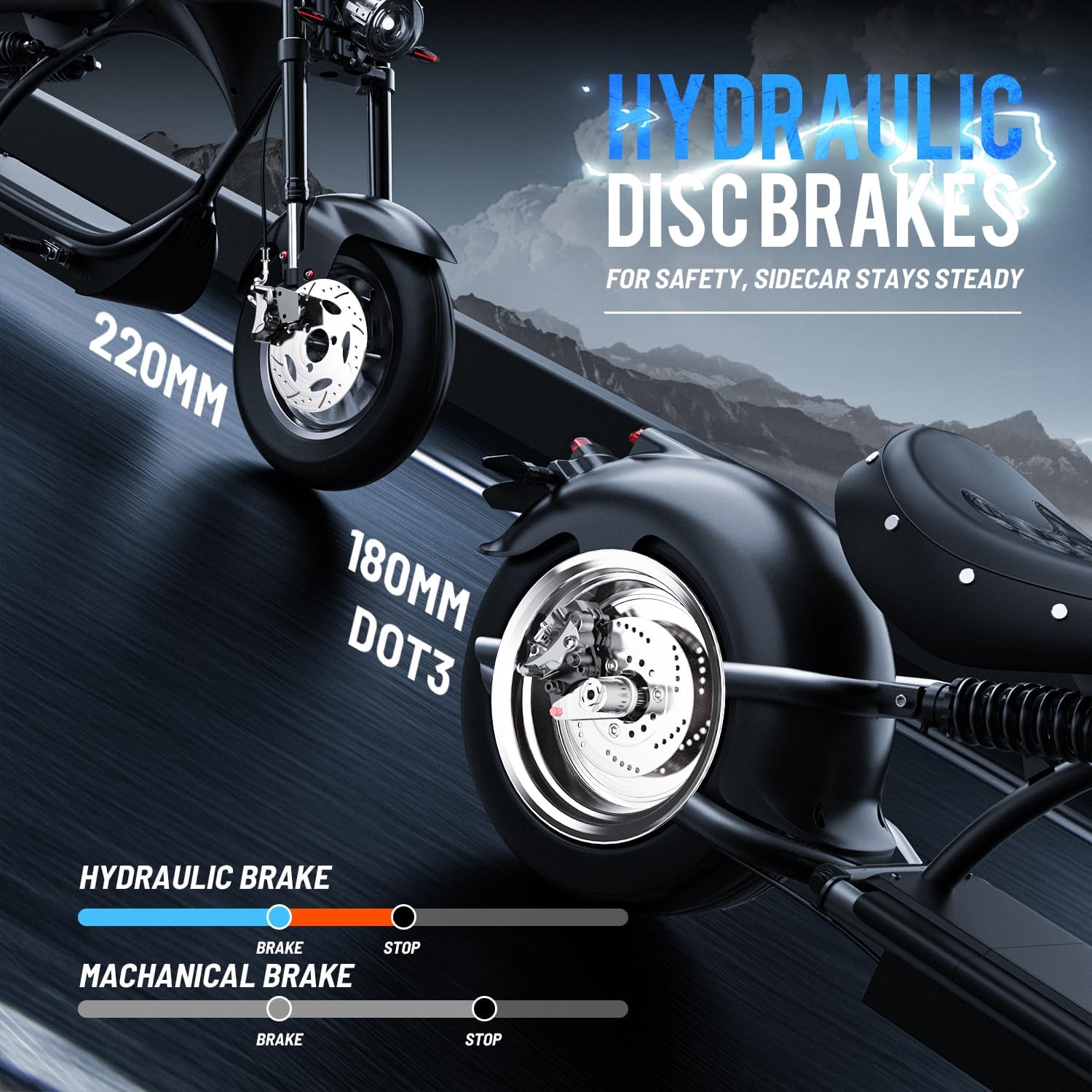 eAhora 2000W M1P Sidecar Electric Motorcycle for Adults,37mph 60V 30Ah Lithium Battery 40+ Miles Range, Full Suspension and Hydraulic Brakes Electric Mopeds