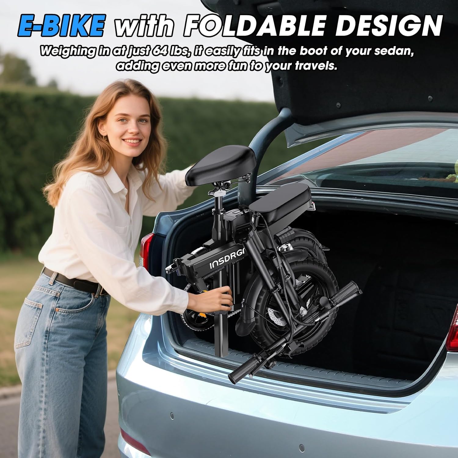 INSDRGN Electric Bike for Adults,14" Folding Adult E Bike with 500W Motor,20 mph,28 Miles Range,Advanced 9-Point Suspension & Pro-Level 44.99% Brake Ratio,Removable Battery,UL 2849 Certified