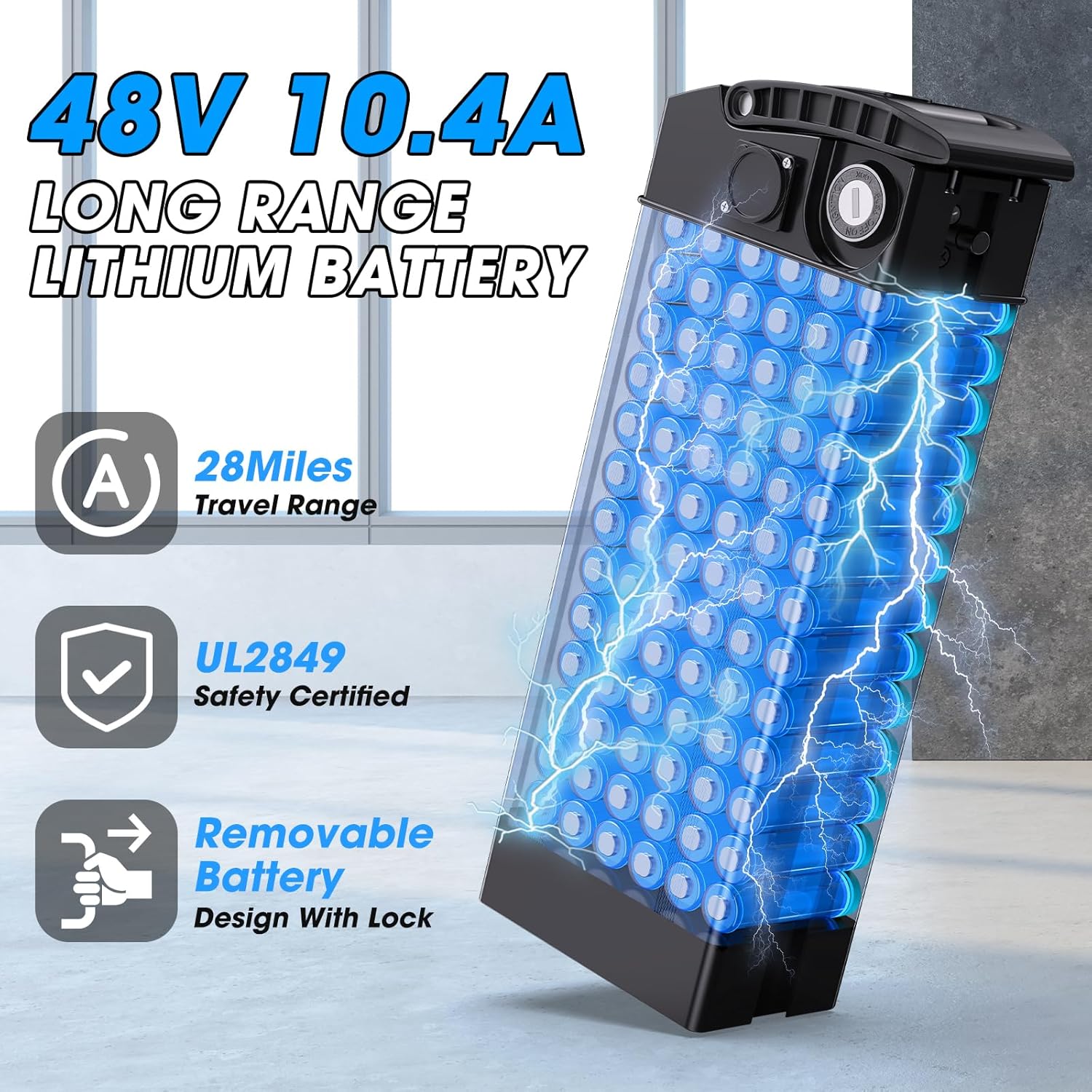 - Unmatched Comfort with 9 Shock Absorbers: Equipped with nine strategically placed shock absorbers, this e-bike offers superior comfort during rides. Whether you're navigating rough terrains or enjoying smooth city streets, you'll enjoy a cushioned and stable experience every time.