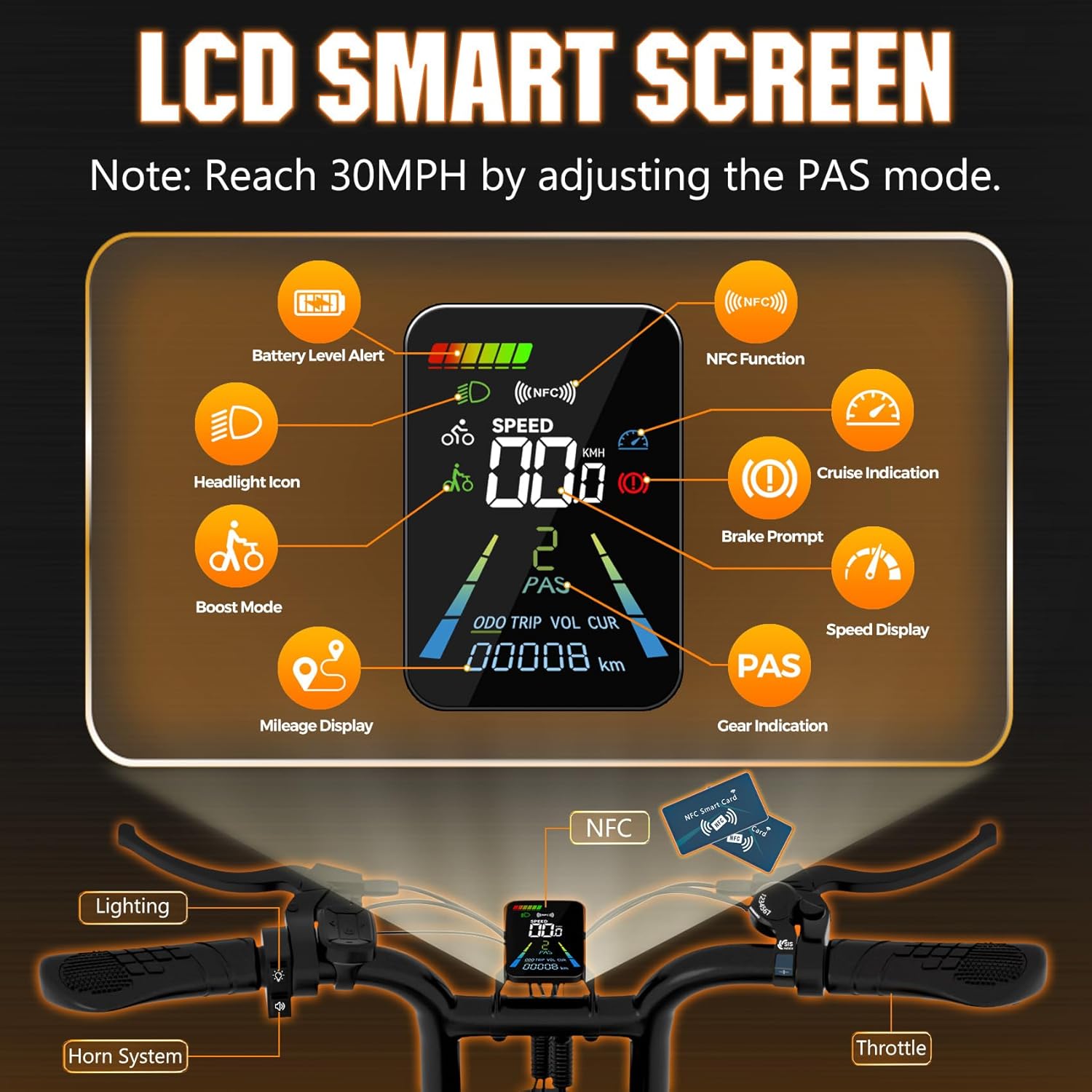 | special feature | 3+2 Riding Modes &7-Speed Manual Gear & 5-level PAS Mode, 48V 15Ah Large Capacity Battery, Advanced Suspension System & Safety System & Dual Hydraulic Brake, Intelligent LCD Display & Retro Design & NFC Unlocking Function, Peak 1800W Brushless Motor |