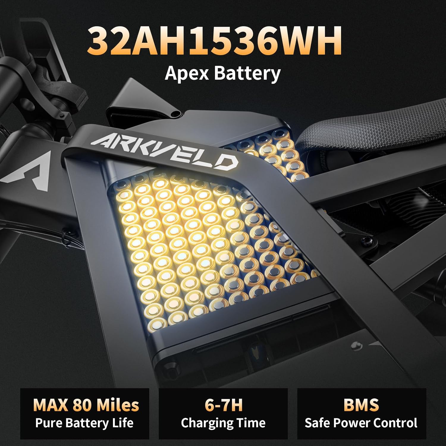 - 【 80 Mile Long Range】Electric Bike for adults with 1536Wh 32 Ah Battery Max 37MPH and Achieve up to 45 miles per charge in electric-only mode and an impressive 80 miles in pedal-assist mode. The detachable 32AH upgraded battery (UL 2849 certified) charges in just 6-7 hours,1536WH high-capacity lithium battery is your reliable companion for long journeys