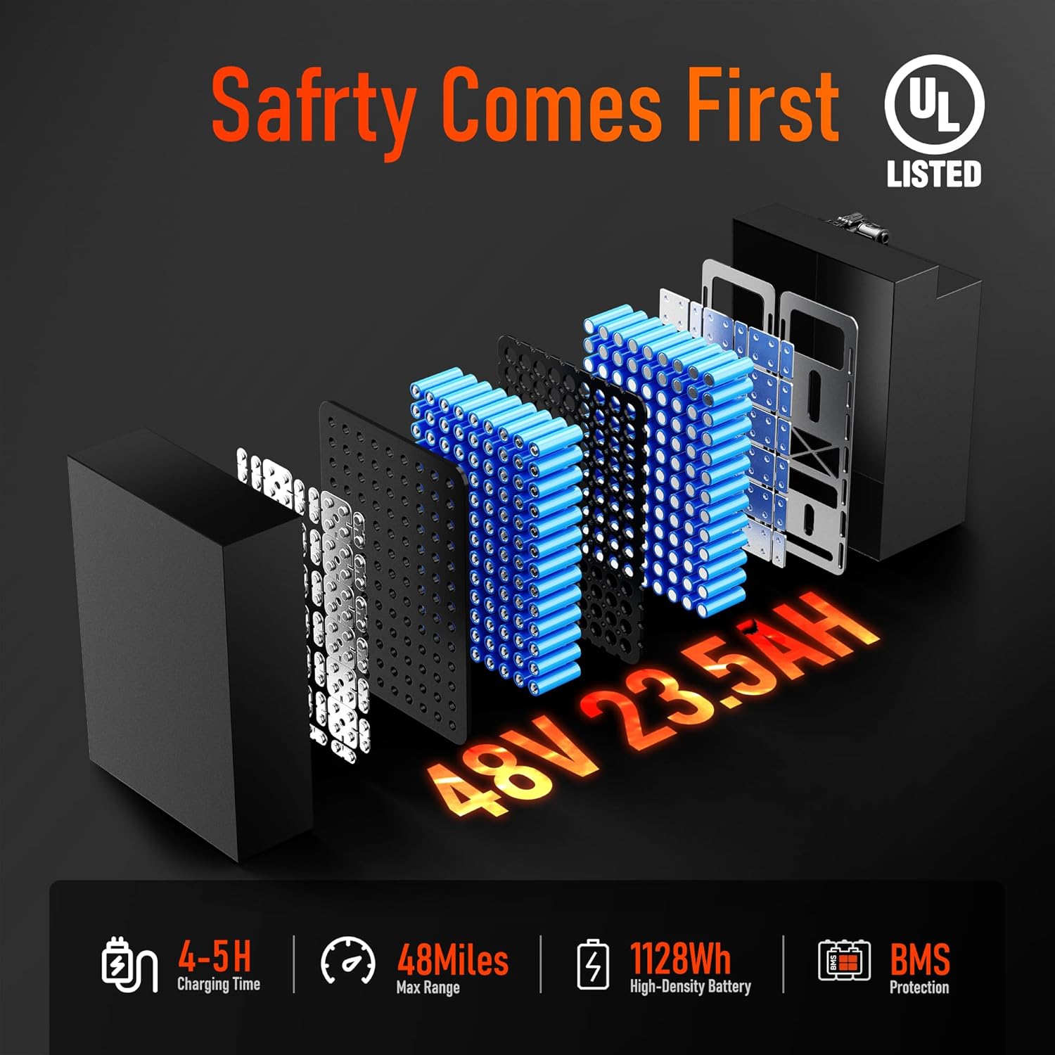 - [Long-Lasting 48V Battery with Smart Protection] The waterproof ebike battery features BMS with overcharge/over-discharge protection to reduce battery degradation. Includes fast charger (4-5 hour charge, 30% faster than competitors). Electric motorcycle for ages 13+ with 48-mile range per charge (It depends on the specific circumstances—things like speed, temperature, terrain, and so on)