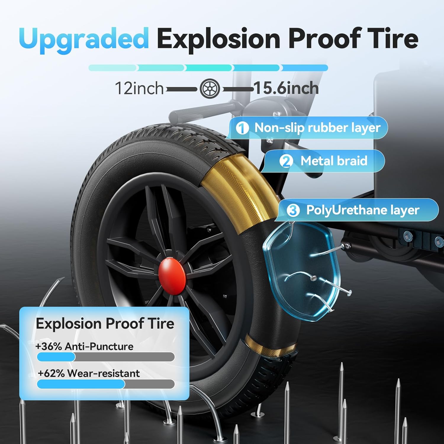 - Reliable Safety You Can Trust – Essential safety features let you ride with complete confidence: rear anti-tip wheels ensure stable movement, electromagnetic brakes boost control, and extra hand brakes provide additional stopping power. You’ll stay safe in every situation