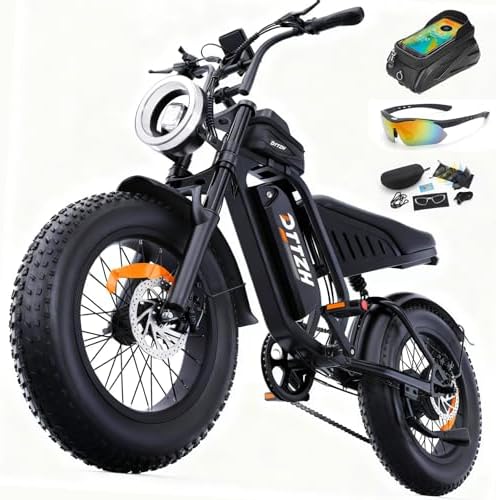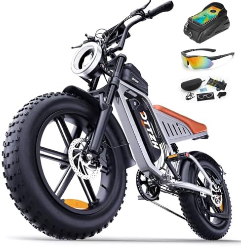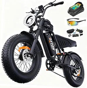 - ☁️【Full Suspension & 20*4 Inch Fat Tires】This electric e motorcycle combines hydraulic front shock absorption and rear shock perfectly to absorb shocks from potholes, rocks, and uneven ground. 20*4 inch fat tires have excellent anti-slip performance, enhancing overall stability and durability of the bike, smooth rides on any terrain (pavement, sand, grass).