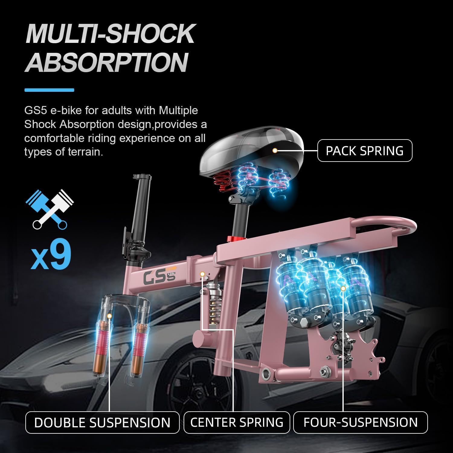 - 【7-Shock Full Suspension System】 Ride comfortably on any terrain with the advanced 7-shock suspension design that absorbs bumps and vibrations. Combined with 14-inch fat tires, it provides superior traction and a smoother riding experience on roads, gravel, or trails.