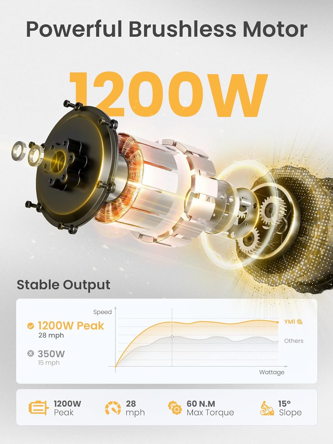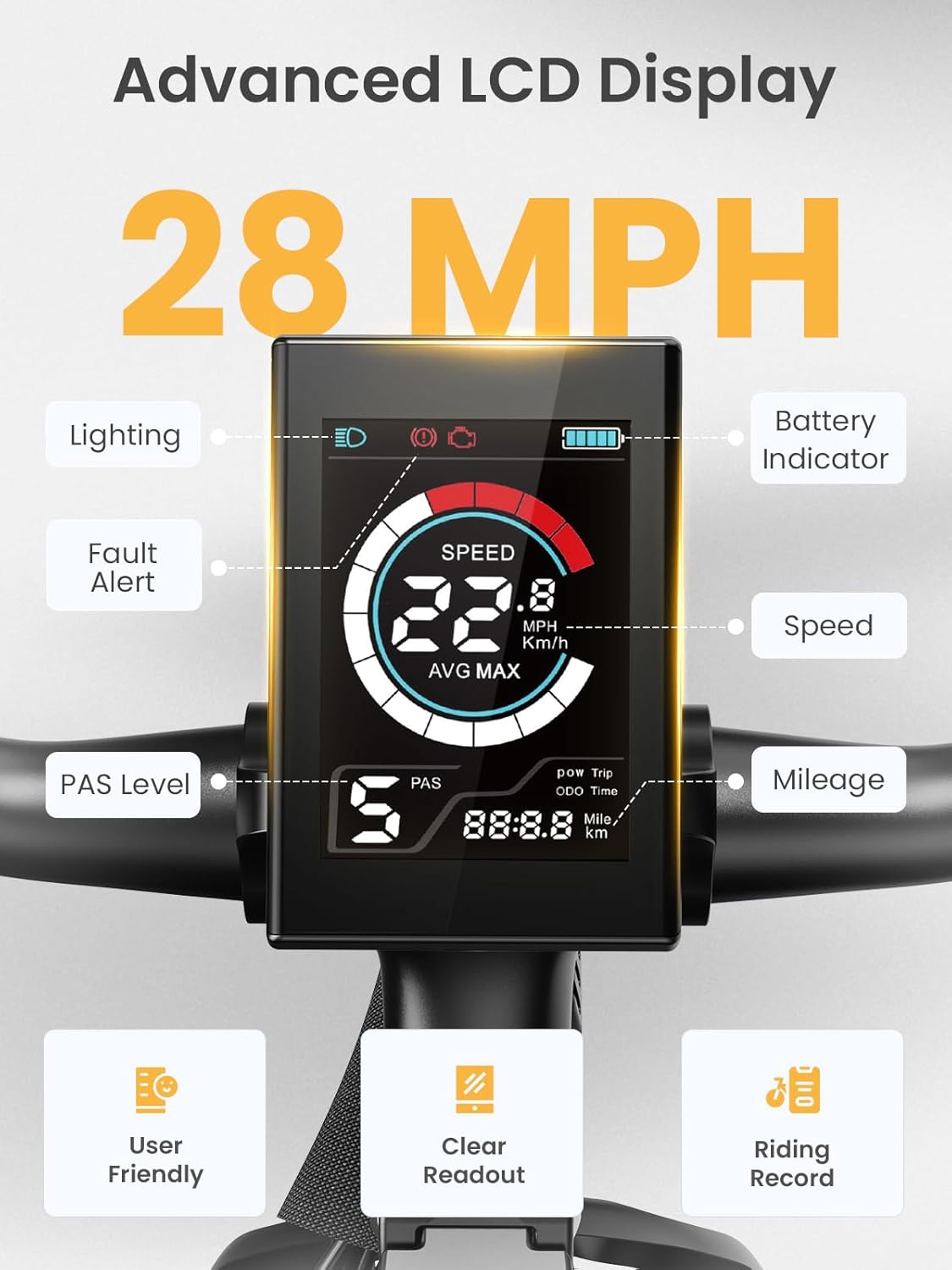 - [High Performance Brushless Motor]- The ebike for adults is equipped with a powerful 1200W peak motor, delivering reliable performance and reaching speeds of up to 28 MPH. Perfect for commuting, exercise, or outdoor exploration, this electric mountain bike is built to meet your every need.Plus, with 7-speed gearing and adjustable stem, commuting has never been easier or more comfortable.
