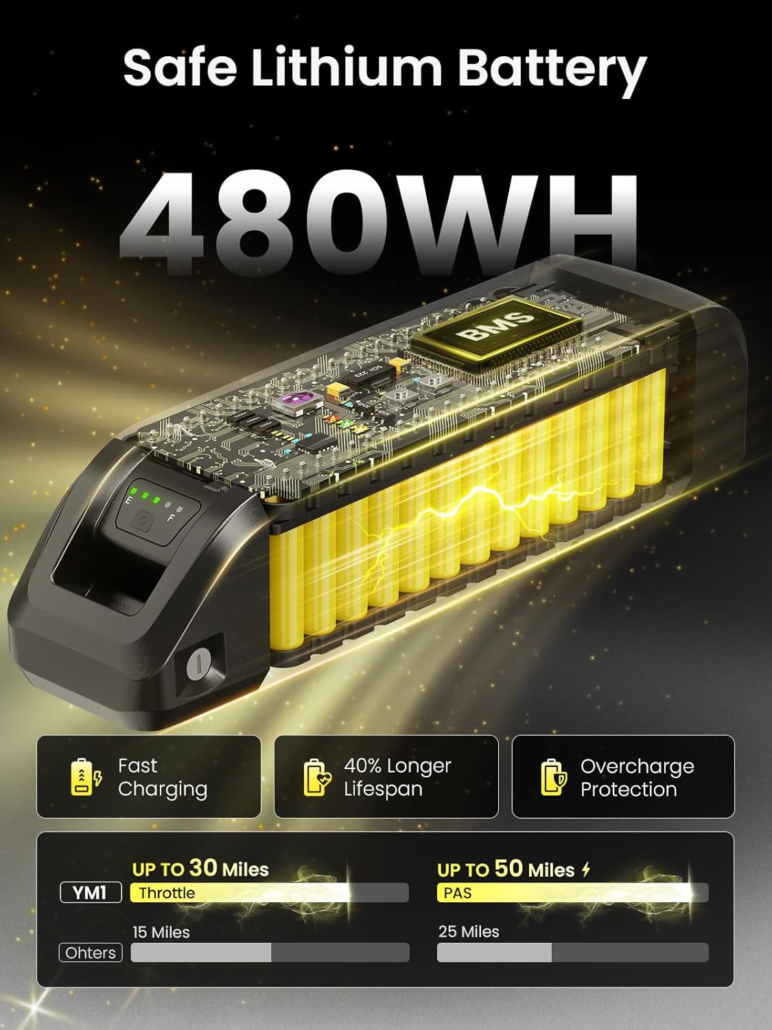 - [Hassle-Free Assembly & Professional Support]- The ebike for adults is made from high-quality high-carbon steel, and its triangular frame design enhances strength and durability. The e-bike comes 90% pre-assembled, making the final assembly process effortless. We provide user manuals on our product page. Additionally, we offer a 12-month warranty, and our professional support team is always ready to assist you with any questions or concerns.
