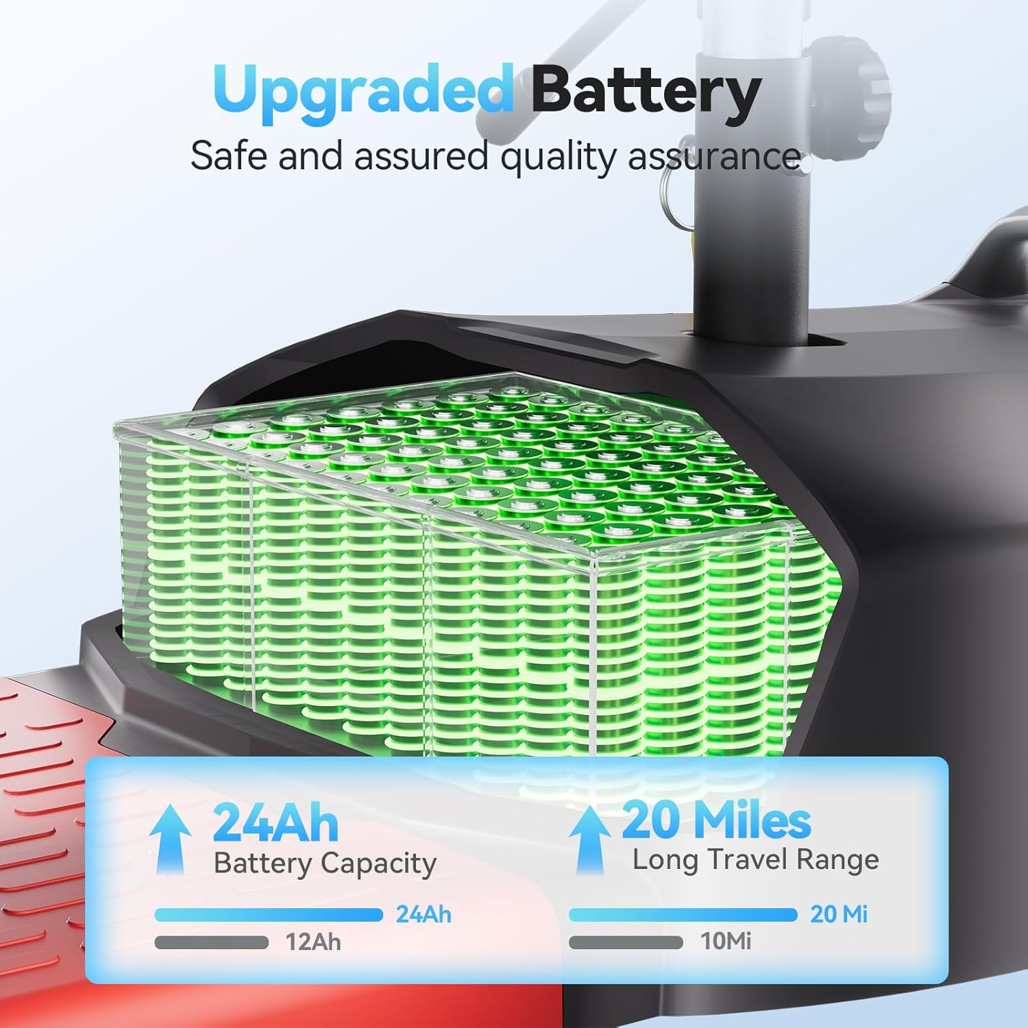 - User-Friendly Control Panel for Hassle-Free Operation - The scooter comes with an intuitive interface having forward/reverse switches, speed adjustment dial, and clear battery level display. Extra buttons for LED lighting control and horn activation boost visibility and safety during rides. A special security key activation system stops unauthorized startup, providing peace of mind while guaranteeing convenient daily use