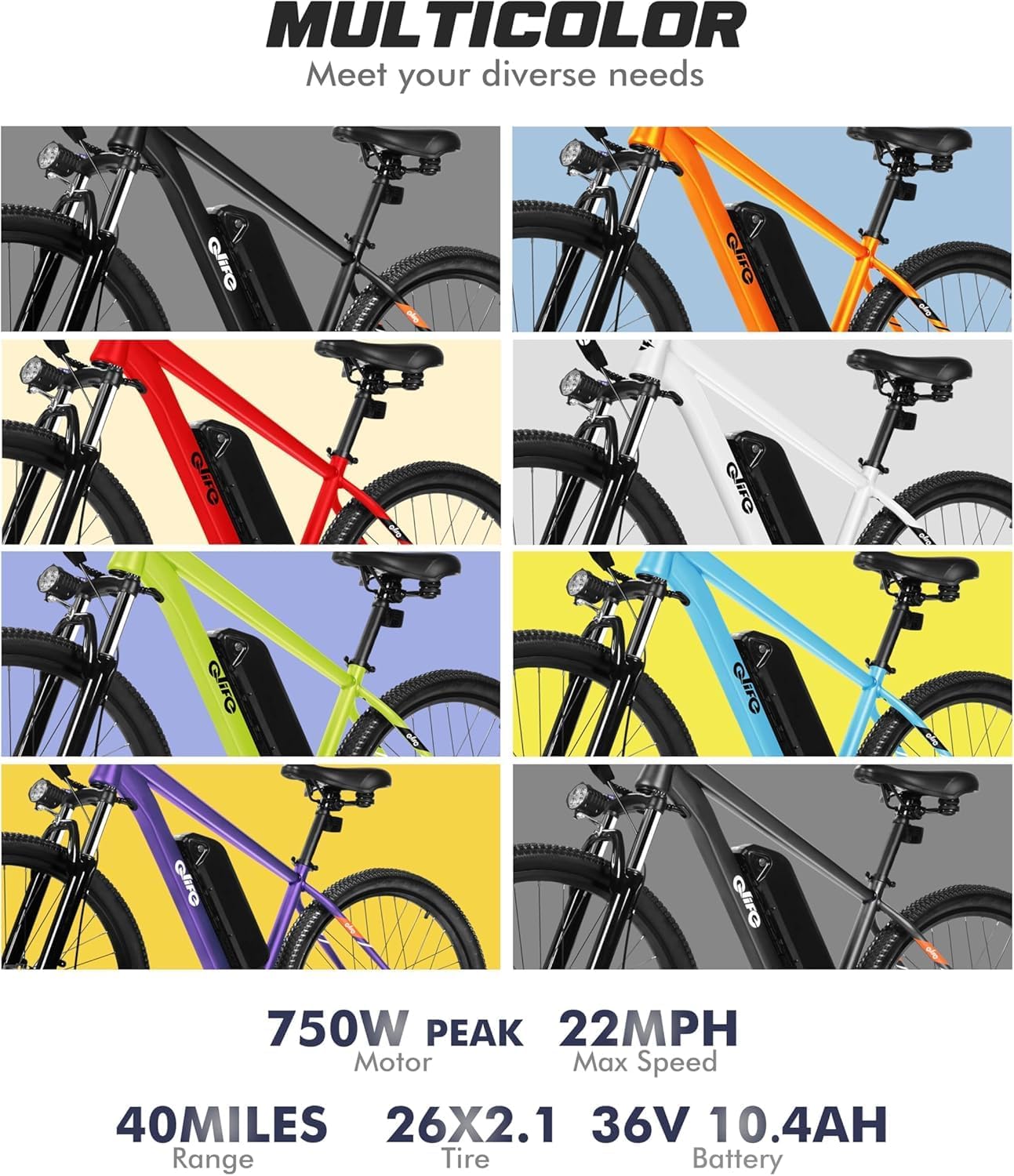 Qlife Racer Electric Bike for Adults - 21-Speed Mountain Lightweight Ebike with Peak 1000W/750W 25MPH/22MPH Brushless Motor, 375Wh Removable Battery, 26X2.1 Tire Step Over E-MTB, Up to 40 Miles