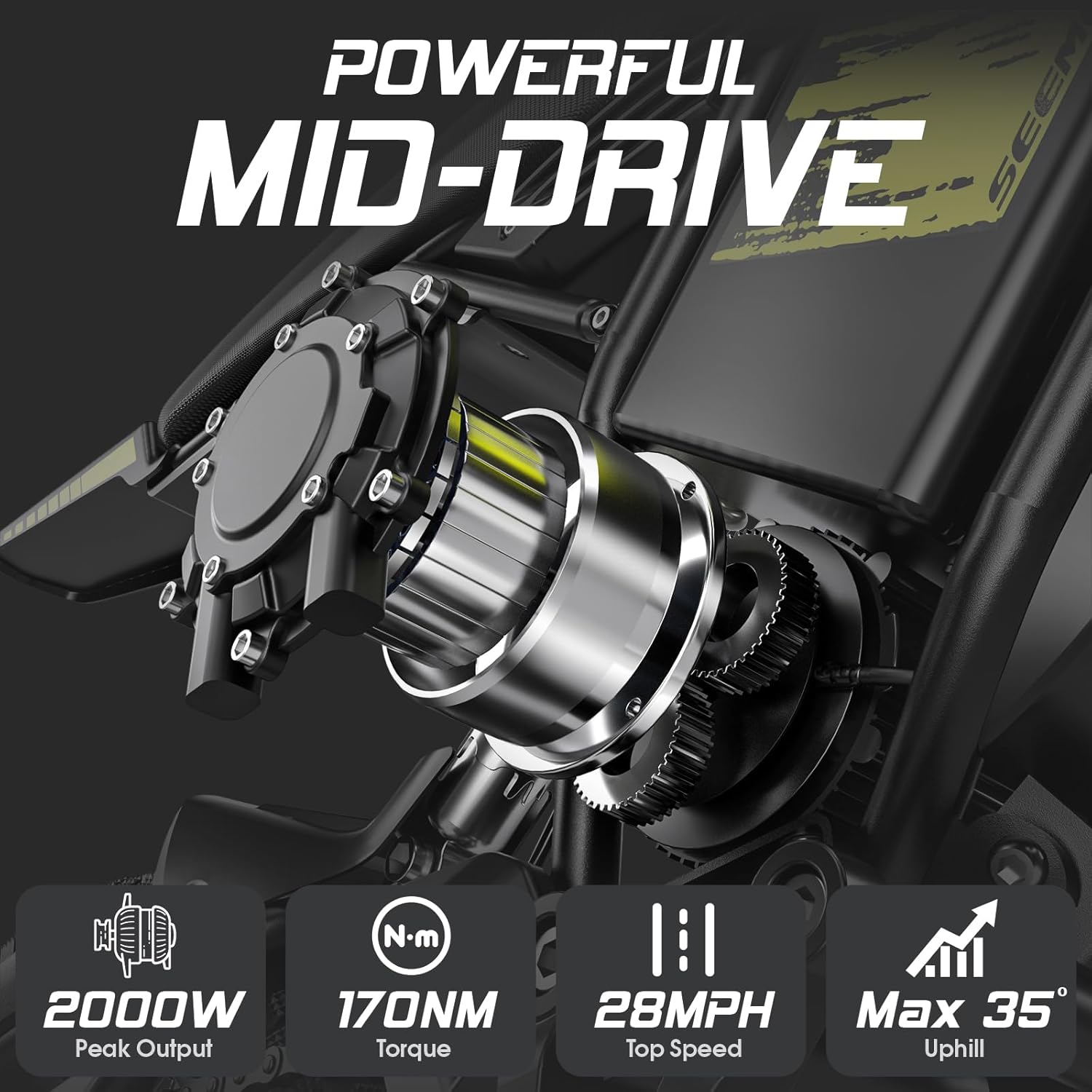 Seemoon Electric Dirt Bike for Adults,2000W Motor,17"Fat Tire Electric Motorcycle|48V 28Ah|28MPH Speed|Up to 100 Miles Range|Hydraulic Brakes|Mountain Off-Road Ebike|IP54 Waterproof|Fit Age 16+