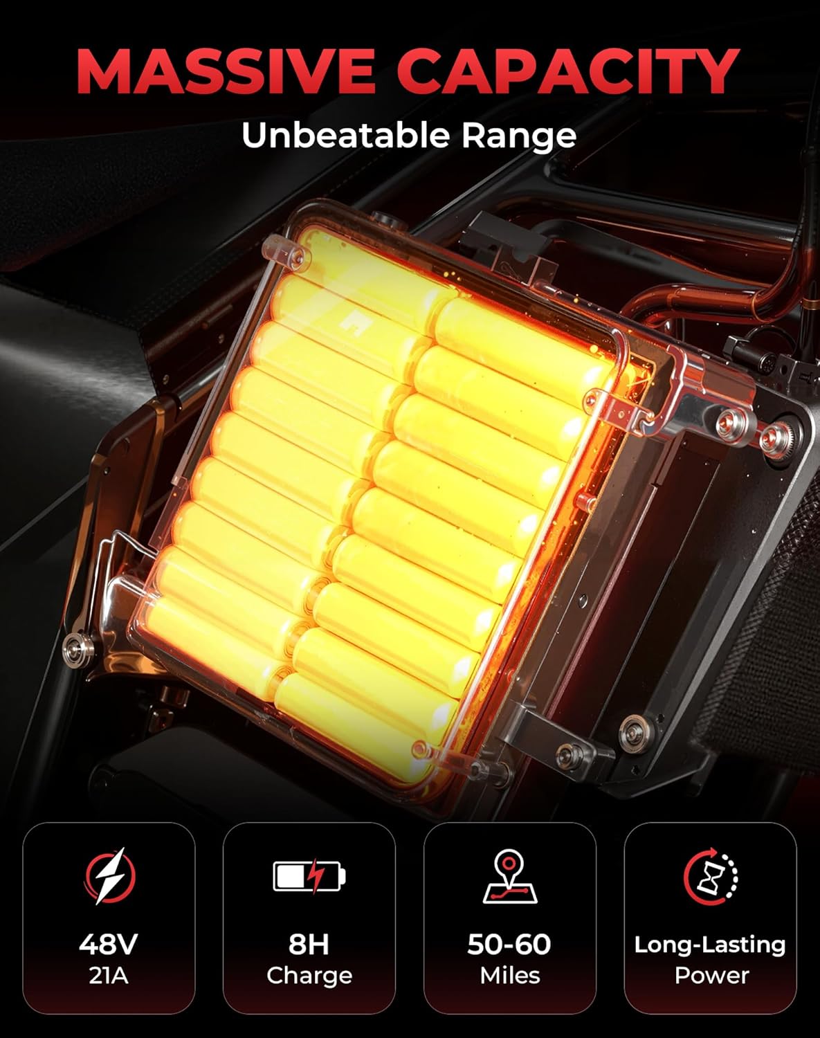 - Mid-Drive Motor for Balanced Power & Precision Control: The 3200W mid-drive motor provides 200N·m torque with a 1:6 gear ratio, giving smooth and responsive acceleration. Enjoy steady power delivery and better handling for all off-road adventures.