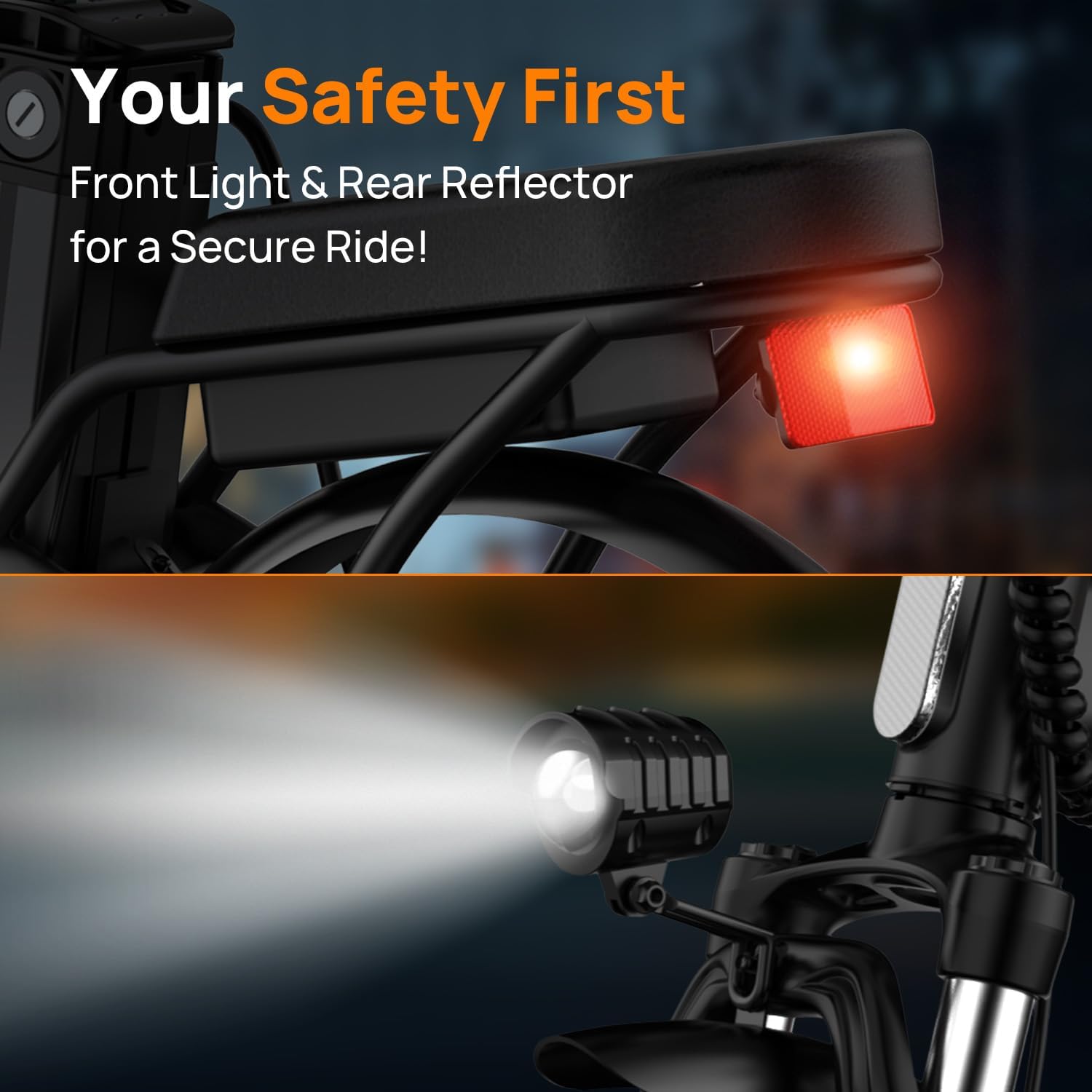 - 【Powerful 500W Peak Motor】Experience thrilling rides with our Electric Ebike featuring a robust 500W peak motor, delivering speeds up to 20MPH for effortless commuting and adventure.