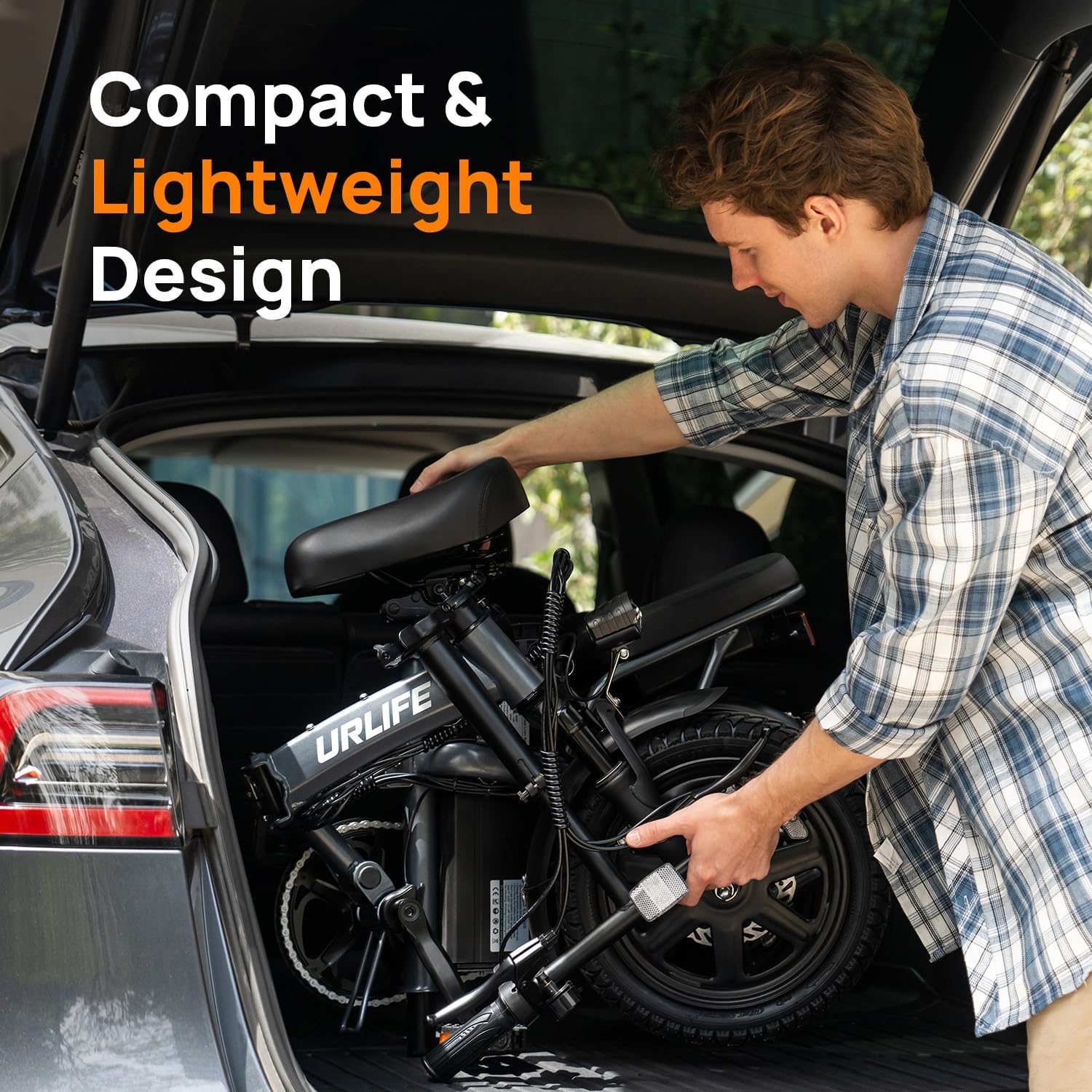 URLIFE Electric Bike for Adults, 14" Folding Electric Bike, 500W Peak Motor, 48V 375Wh Removable Battery, 20MPH, 40 Miles Long Range, Mini E Bikes for Adults and Teens, UL Certification