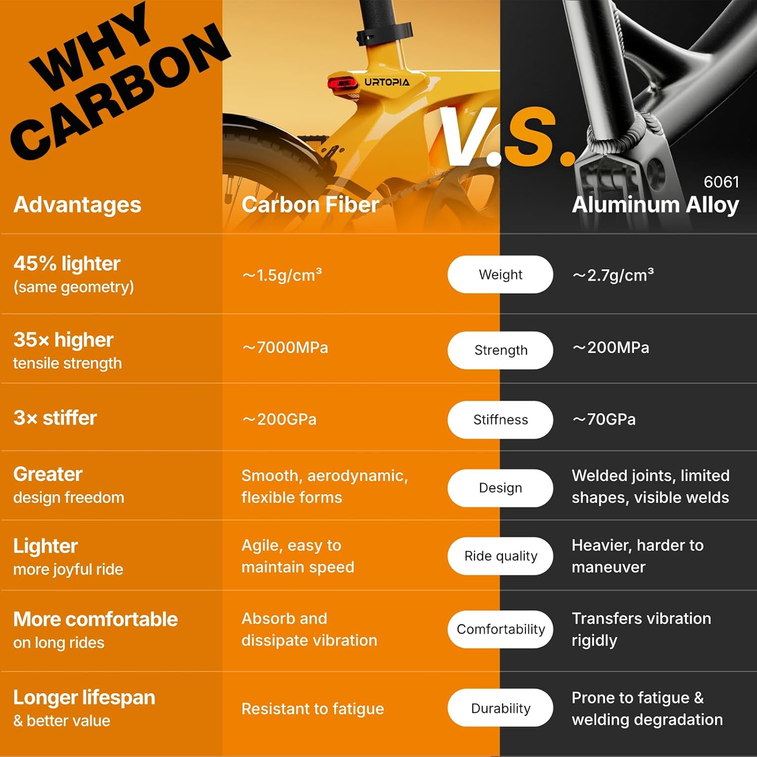 - 𝟐𝟗𝐥𝐛 𝐔𝐥𝐭𝐫𝐚-𝐋𝐢𝐠𝐡𝐭 𝐂𝐚𝐫𝐛𝐨𝐧 𝐅𝐢𝐛𝐞𝐫 𝐄-𝐛𝐢𝐤𝐞: Crafted entirely from high quality carbon fiber, this electric folding bike weighs only 29lbs, making it an impressive 45% lighter than traditional aluminum alloy folding e-bikes.