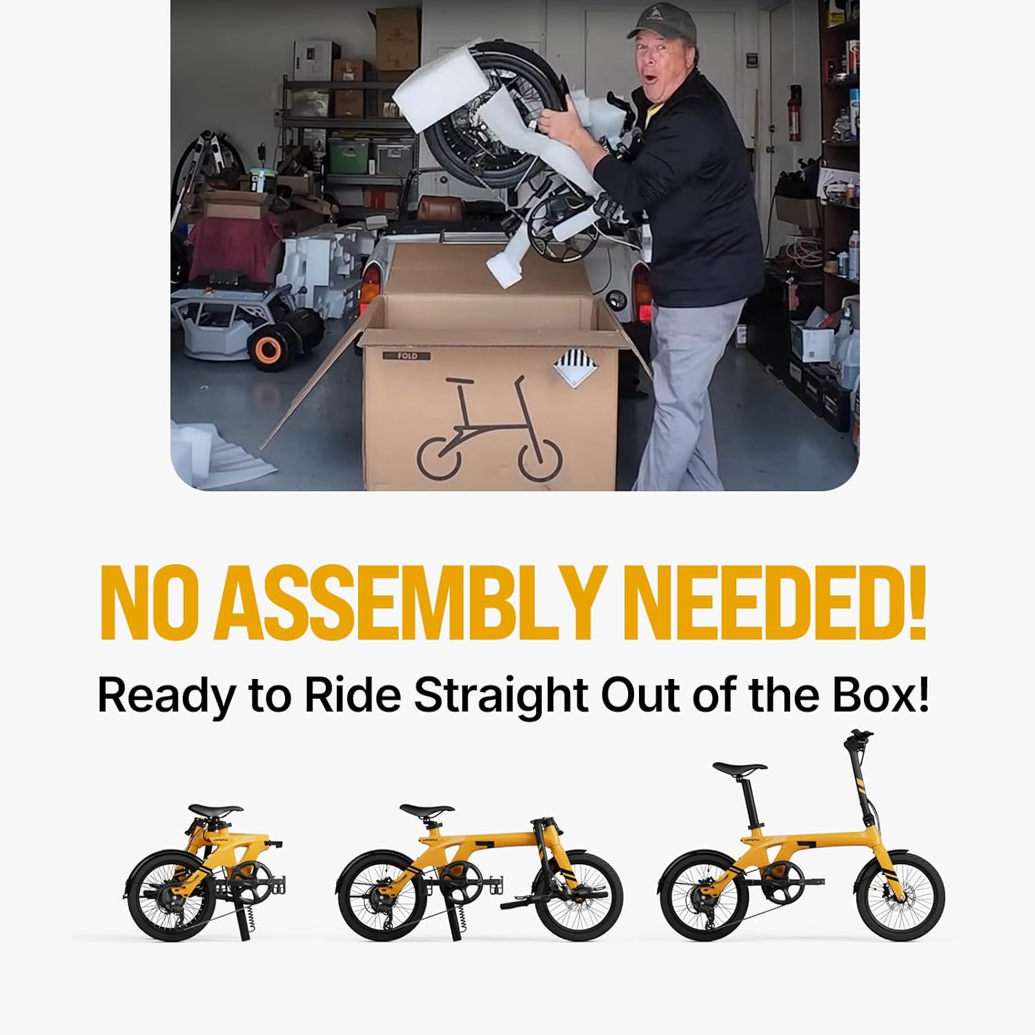 - 𝐀𝐬𝐬𝐞𝐦𝐛𝐥𝐲-𝐅𝐫𝐞𝐞 𝐅𝐨𝐥𝐝𝐢𝐧𝐠 𝐄𝐥𝐞𝐜𝐭𝐫𝐢𝐜 𝐁𝐢𝐜𝐲𝐜𝐥𝐞: No assembly is required. There's no need for cumbersome assembly steps or an assembly instruction manual. After receiving the package, you can simply unfold the foldable electric bicycle in just two steps and start using it.
