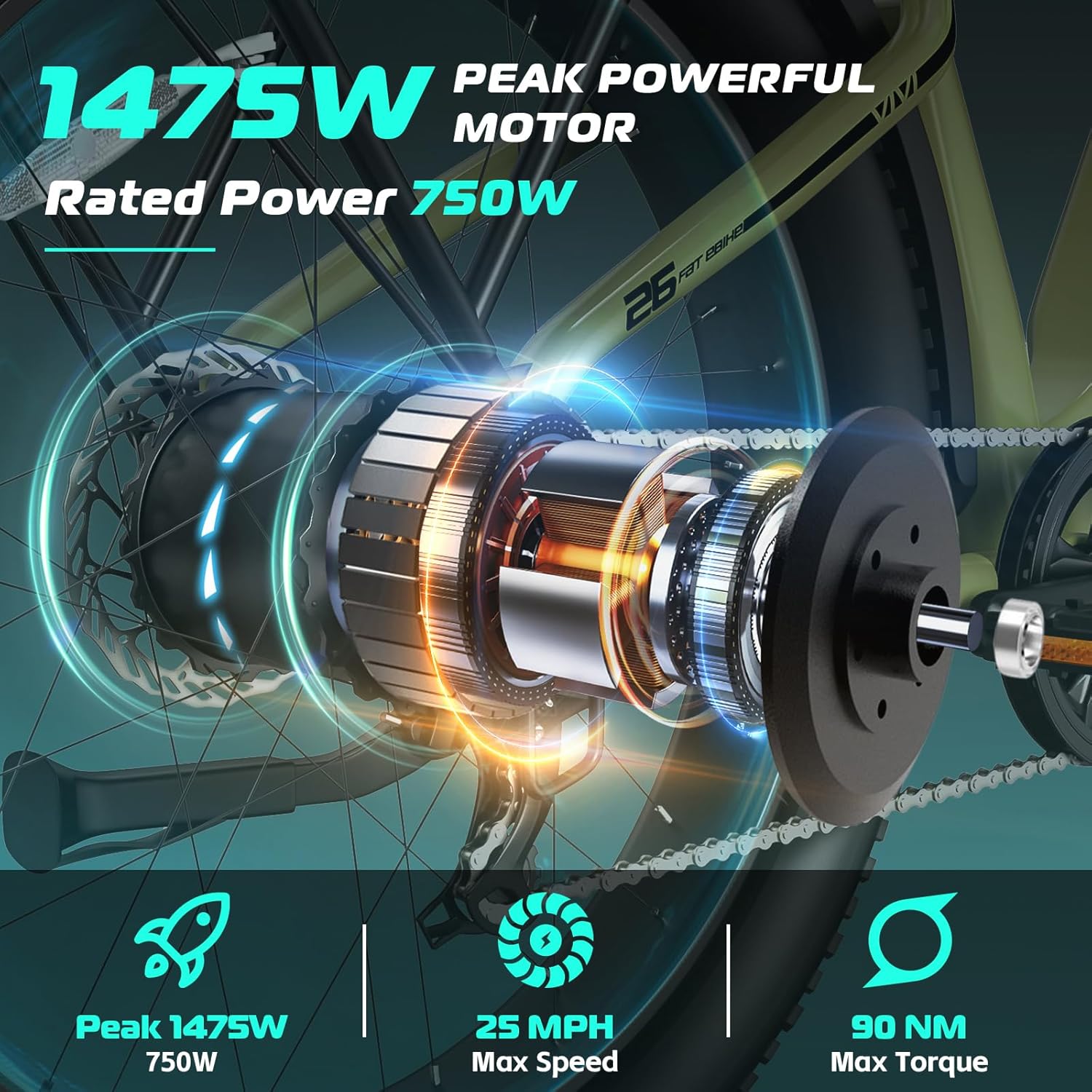 - POWERFUL 1475W PEAK MOTOR: Vivi fat tire electric bike is equipped with a high speed rated 750W motor(1475W peak). It can reach a top speed of 25 mph, provide powerful and efficient assistance to conquer hills and challenging terrains with ease. With 90Nm of torque, it's more than enough for daily riding on all terrains, ensuring an excellent off-road riding experience