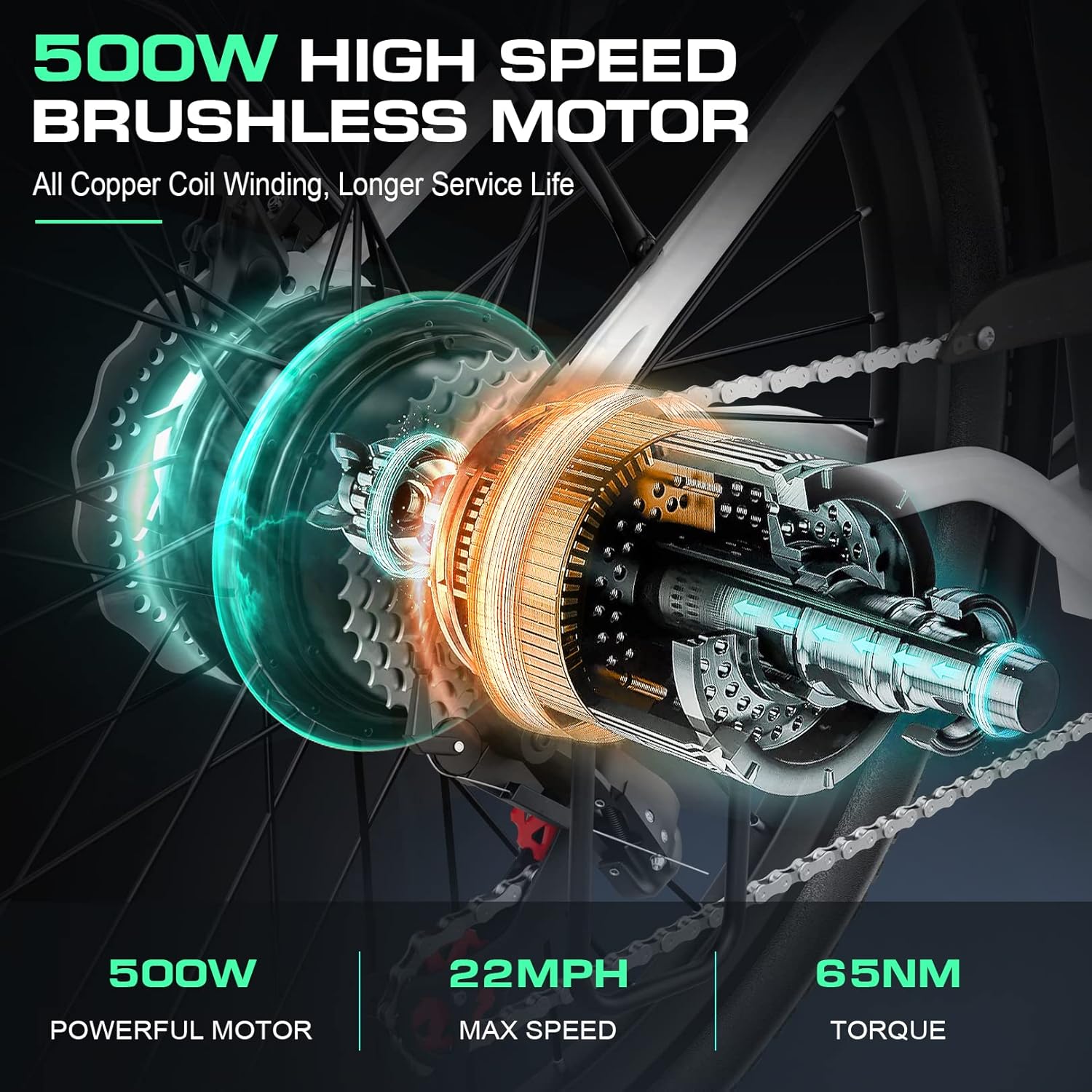 - POWERFUL 48V 500W MOTOR: VIVI Electric city bike is equipped with a 48V 500W high-speed brushless motor, the peak power can reach 1000W, provide enough power for your daily outings and beach trips. With speeds up to 22 mph, it will get to your destination faster, provides power for hill climbs and faster acceleration